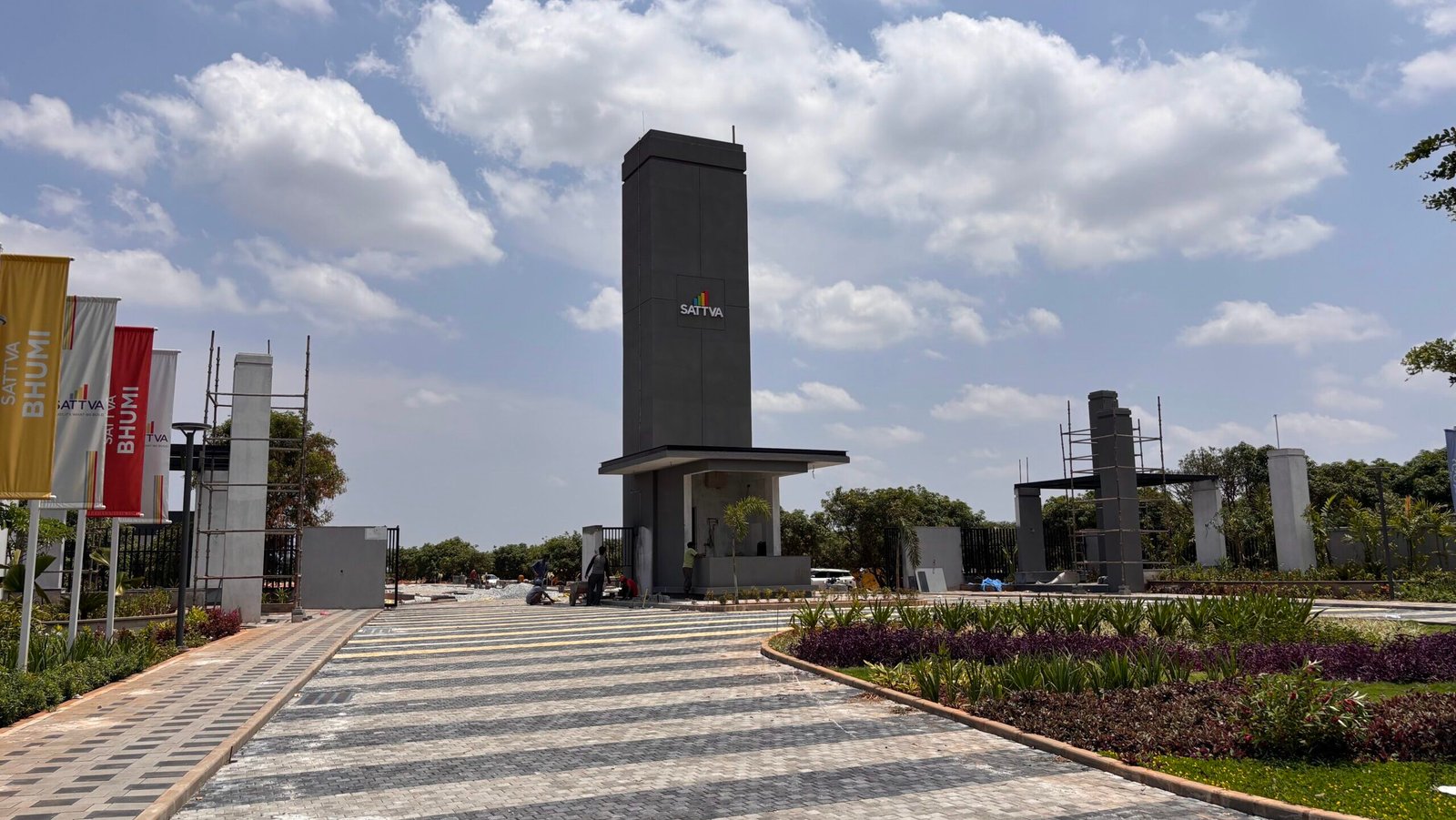 Sattva Bhumi features a clean and modern landscape design with well-planned greenery, open spaces, and comfortable outdoor pathways.